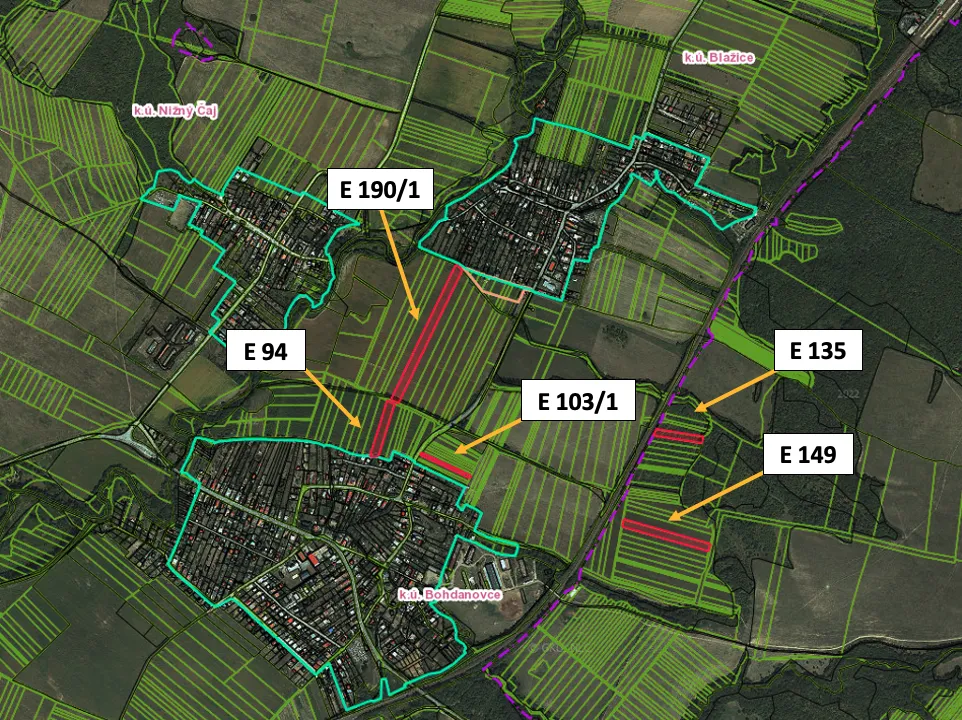 INVESTIČNÁ PRÍLEŽITOSŤ V KATASTRÁLNOM ÚZEMÍ BOHDANOVCE! – pozemky v prebiehajúcej komasácii začatej v roku 2026 vhodné pre poľnohospodárov aj investorov!