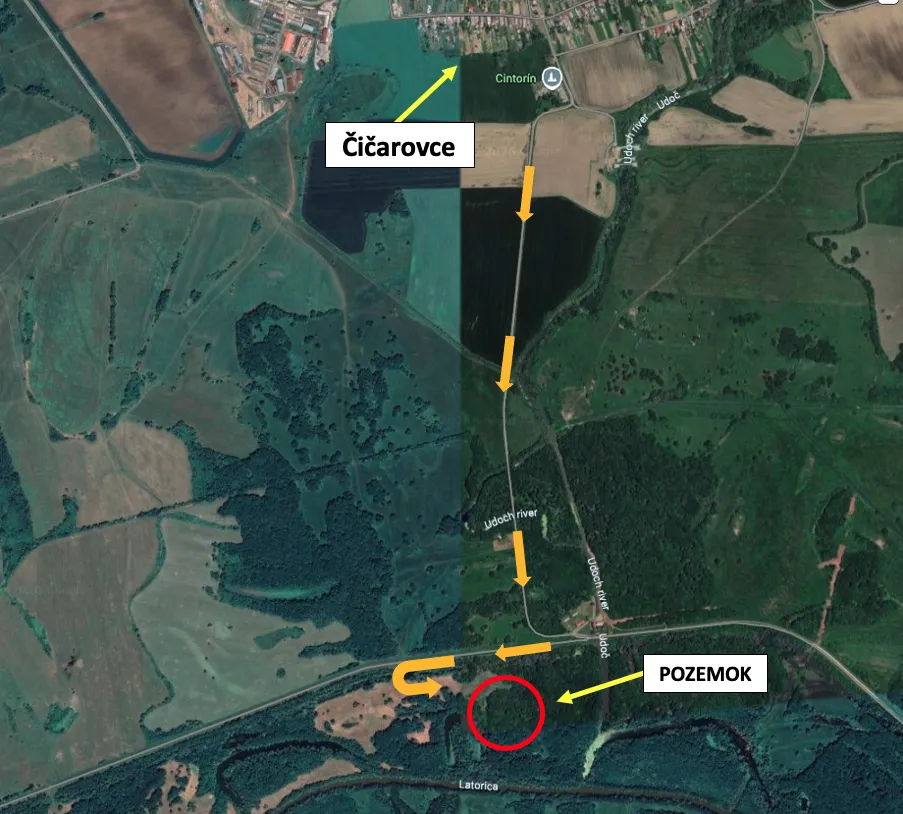 – GPS súradnice na pozemok: 48.516808, 22.024730. Obhliadku je možné realizovať kedykoľvek samostatne. K pozemku vedie vyjazdená poľná cesta. K tejto ceste je prístup priamo z obce Čičarovce smerom na juh, kde sa vlieva rieka Udoč do Latorice a následne asi 200 m po hrádzi.