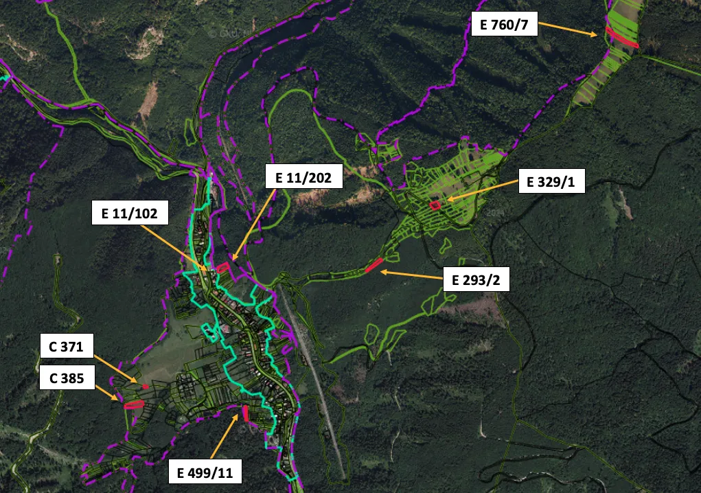 – Parcely sú evidované na listoch vlastníctva č. 182, 364, 366, 367, 523 a 524 pre katastrálne územie Dolný Harmanec.