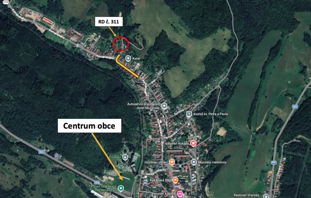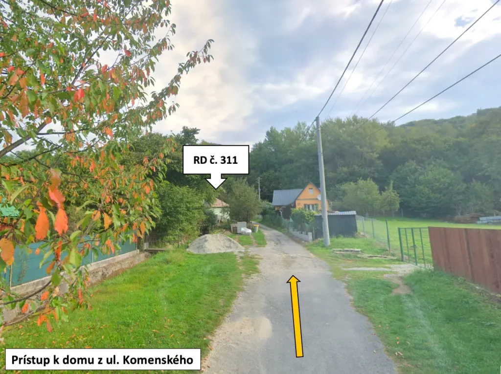 Prístup k domu je zabezpečený po obecnej ceste, konkrétne po ulici Komenského (prístup je vyznačený v galérii inzerátu).
