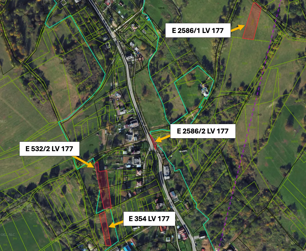 – Nehnuteľnosti sú evidované na listoch vlastníctva 471, 482 a 177 pre katastrálne územie Lúčky.