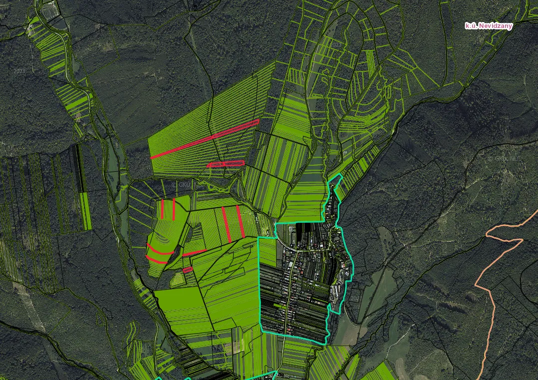 – Parcely sú evidované na liste vlastníctva č. 769 pre katastrálne územie Nevidzany, majú celkovú výmeru 24.377,00 m2, pričom na liste vlastníctva sú vedené ako Orná pôda a Trvalý trávny porast.
