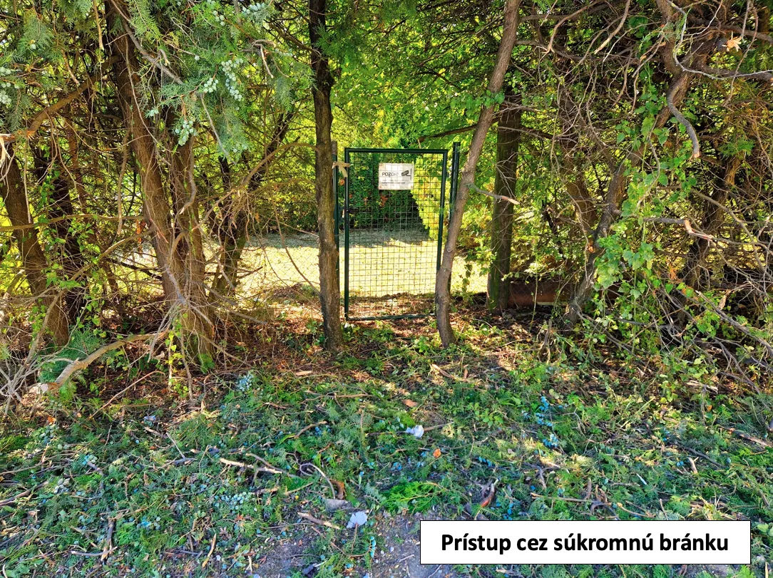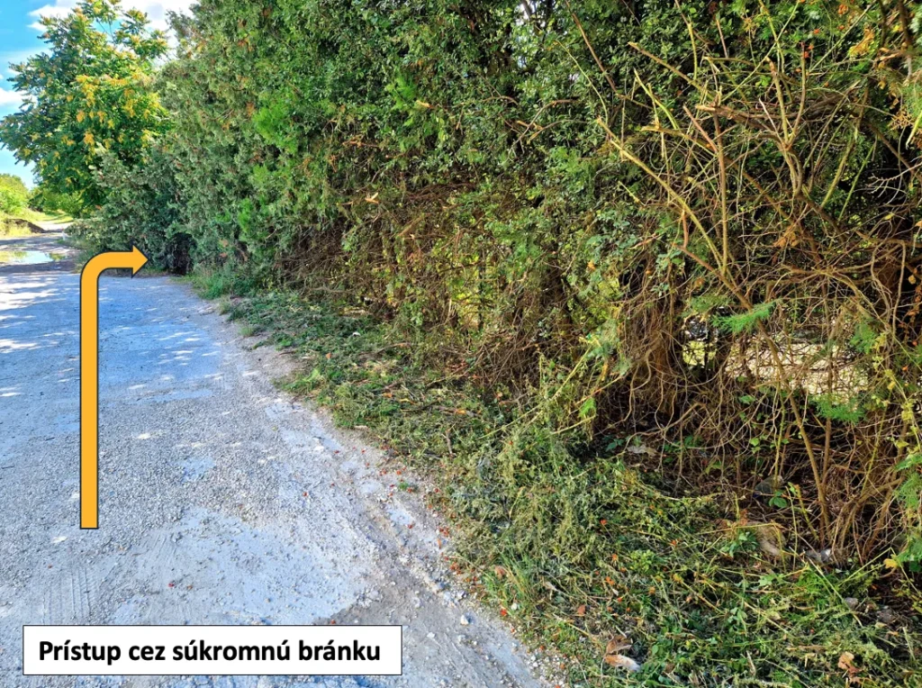 – Záhradka má rovinatý charakter a výmeru 505 m2, pričom rozmery pozemku sú cca 38 m x 13 m. Prístup na pozemok je bezproblémový, a to ako peši, tak i osobným automobilom, pričom možno využiť jednu z dvoch ciest – cestu zo severnej strany po ulici Šuranská (štátna cesta) s novopostavenou vstupnou bránou, alebo súkromnú cestu z južnej strany – tj. cez cestu v záhradkárskej oblasti. (súčasťou predávaného pozemku je spoluvlastnícky podiel na tejto ceste o výmere 37,9 m2).