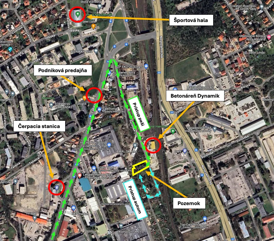 – Pozemok parcelné číslo 4694/34, reg. „C“ je evidovaný na liste vlastníctva č. 6454 pre katastrálne územie Nitra (spoluvlastnícky podiel na prístupovej ceste je evidovaný na liste vlastníctva č. 6479).
