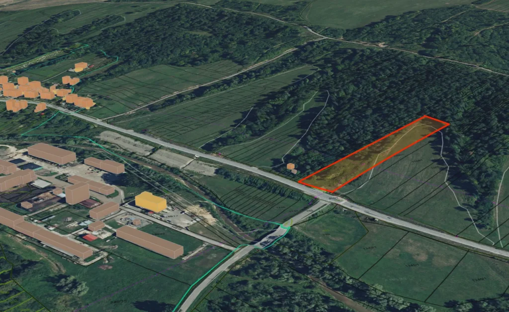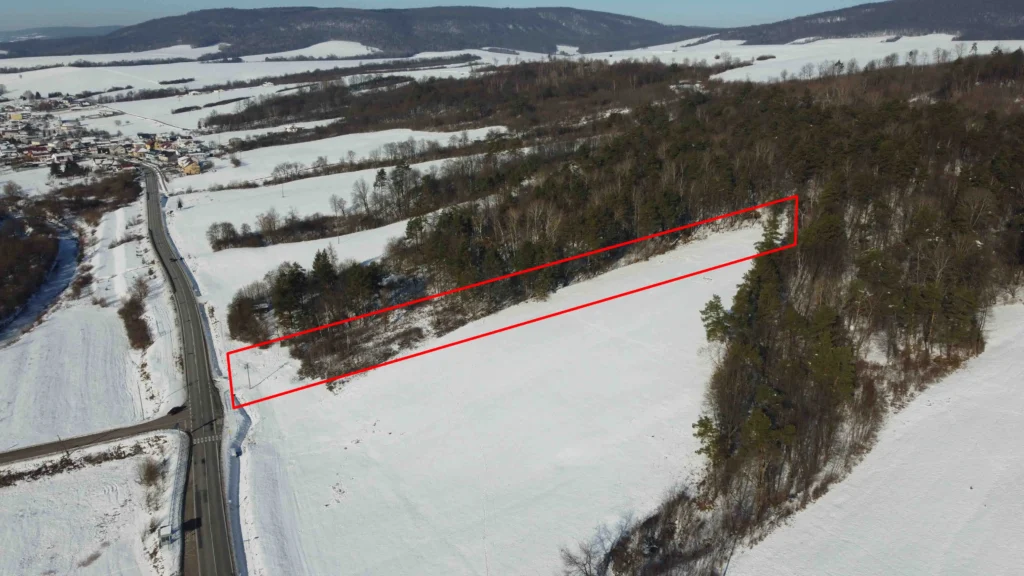 – Pozemok má zabezpečený prístup rovno od hlavnej cesty, jeho celková výmera je 8.429m². Má pomerne rovinatý terén, ktorý ide do svahu. Približne 200 metrov od pozemku sa chystá výstavba novej ulice.
