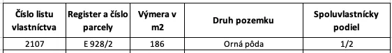 – Parcela je evidovaná na liste vlastníctva č. 2107 pre k.ú. Orovnica a vedená je ako Orná pôda.