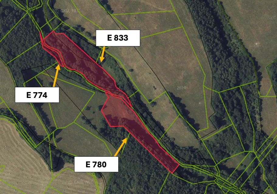 – Pozemky sú evidované na listoch vlastníctva č. 239, 240, 241, 331, 333 a 374 pre katastrálne územie Počúvadlo, Banská Štiavnica.