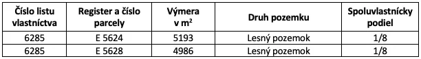 – Výmera spoluvlastníckych podielov tvorí 1.272,38 m2 a pozemky sú na listoch vlastníctva vedené ako Lesný pozemok.