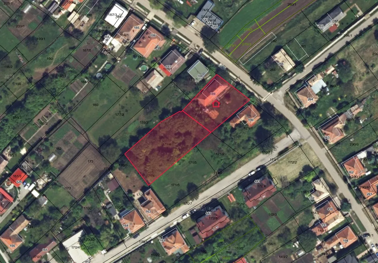 Dom sa predáva spolu s pozemkom, ktorý má výmeru veľkorysých 2196 m2. Prístup k domu je zabezpečený po obecnej ceste, kde bez problémov zaparkuje viacero osobných automobilov.