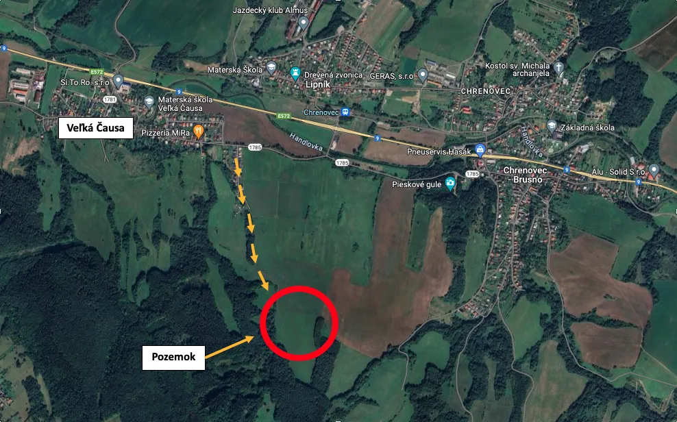 Spoločnosť Slovak Estate s.r.o. ponúka na predaj pozemok v katastrálnom území Veľká Čausa, blízko obce Veľká Čausa a obce Chrenovec-Brusno.
