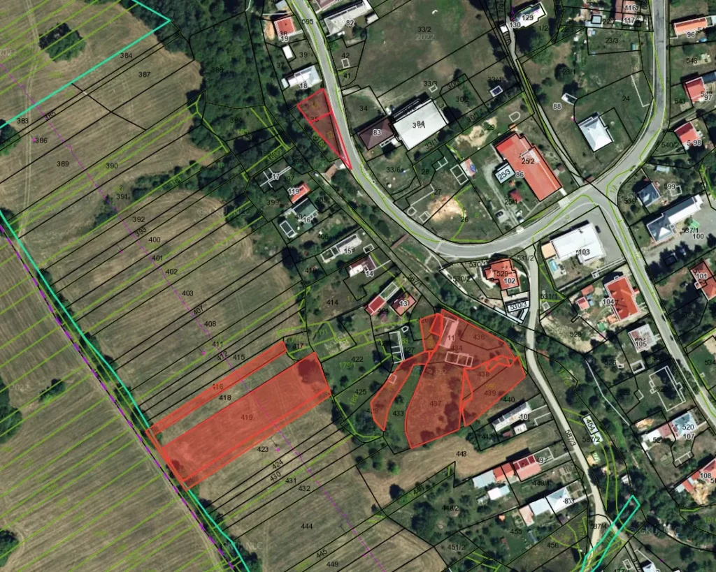– Mapu s vyznačením parciel a zoznam parciel možno nájsť v galérii inzerátu