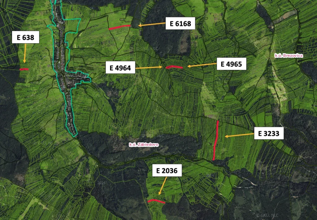 – Výmera spoluvlastníckych podielov tvorí celkom 11.649,75 m2 a pozemky sú evidované na listoch vlastníctva č. 692, 978, 1480, 1231 a 1575 pre katastrálne územie Zábiedovo, pričom na listoch vlastníctva sú vedené ako Trvalý trávny porast a Orná pôda.