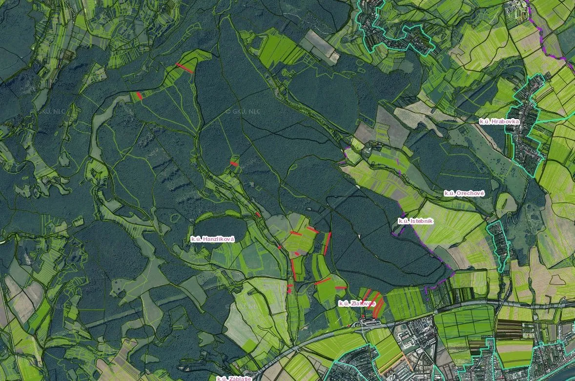 – Pozemky sú evidované na listoch vlastníctva č. 2504, 3181, 2297 („E“ 1677, 2234, 2402, 2629), 2252 („E“ 1384, 1393, 1399, 1587/1, 1660, 1702, 1713/1, 1714, 1887, 1993, 1996, 2037, 2038, 2074, 2233, 2235, 2259, 2917, 3037, 1204) pre katastrálne územie Zlatovce a sú vhodné pre obhospodarovateľa pôdy, prípadne ako investičné pozemky do sceľovania pozemkov (komasácií).