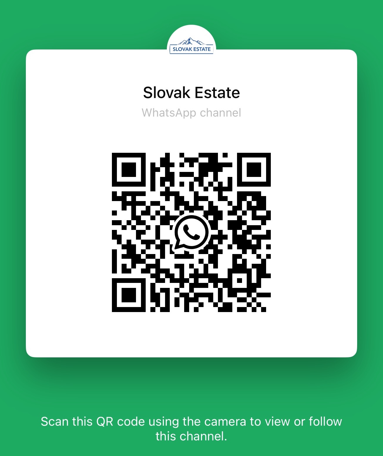 Ako sa pridáte do nášho kanála na WhatsApp? Je to jednoduché. Stačí kliknúť na tento link WhatsApp kanál Slovak Estate, a stanete sa jeho členom. Svoje členstvo musíte potvrdiť. Ďalšou možnosťou je načítanie QR kódu nižšie: